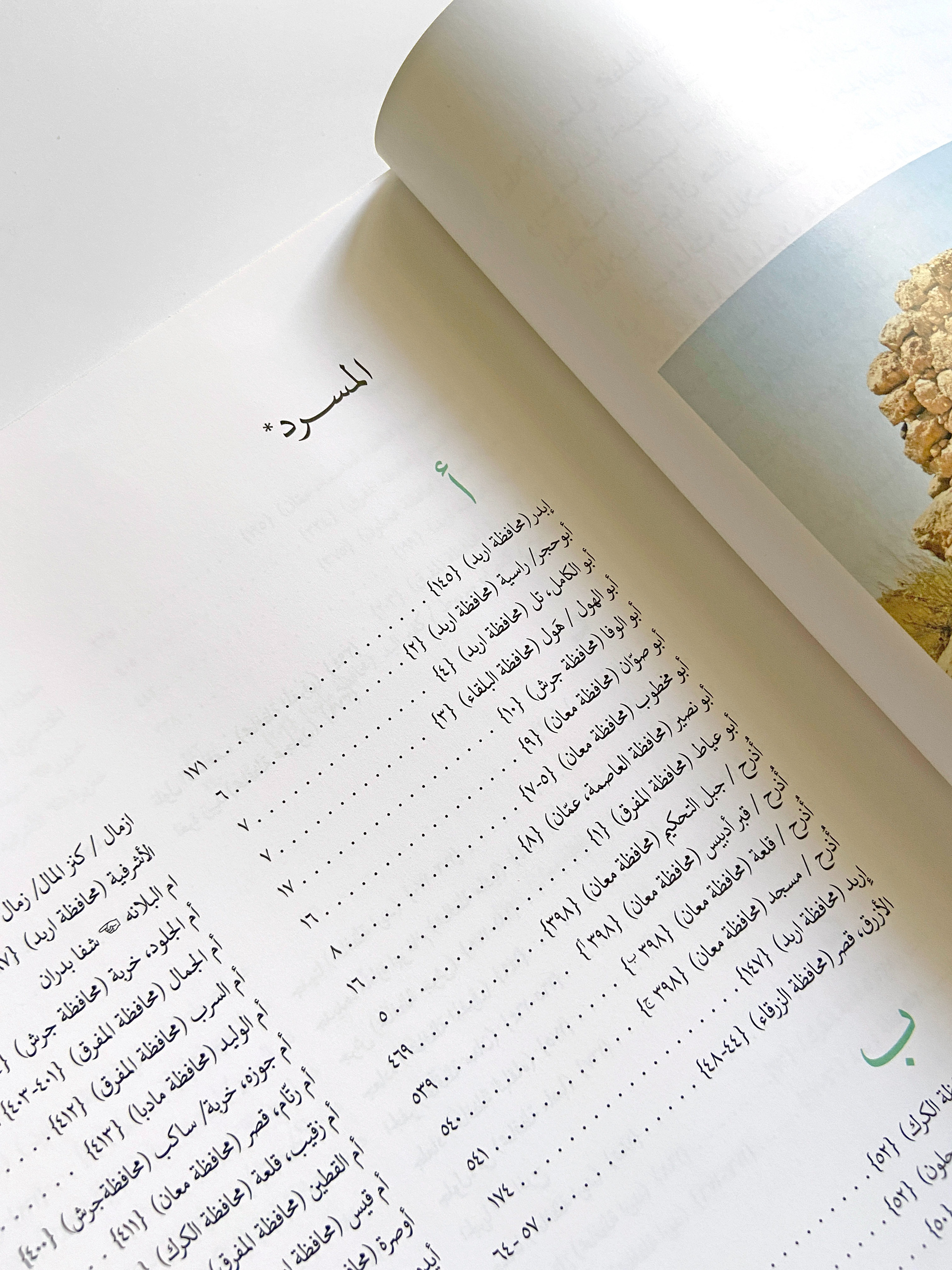 تتضمّن مصادر الكتاب وصفًا لتلك الأماكن من رحّالة عرب وغربيين من القرنين التاسع عشر والعشرين. وفي كثيرٍ من الحالات فإنَّ النقوش تُعطي مؤشّرًا عن سيرة المكان والأشخاص الذين كانوا جزءًا منها. تمَّ الاقتباس من جميع هذه المصادر في النصوص المصاحبة للوصف لكل مكانٍ أو نصب. وإنَّ الإحداثيات المُعطاة من قِبَل جدولة بيانات الشرق الأوسط للآثار (ميجا جوردان) تسمح بإعطاء تحديدٍ دقيق لأماكن هذه المواقع ممّا يُسهّل السعي لزيارتها.